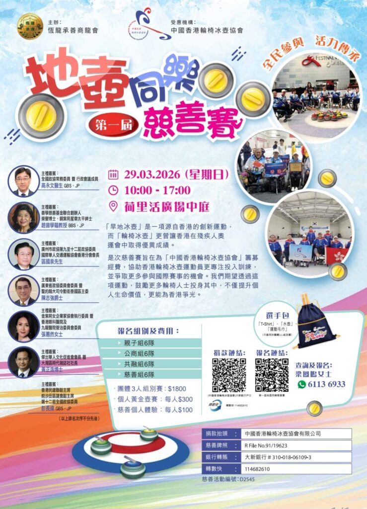 距離3月29日還有一段時間,這正是推廣最重要的窗口。對中國香港輪椅冰壺協會而言,活動目標不只是籌款,更是向社會發出邀請:邀請大家用一次參與,認識輪椅冰壺背後的訓練需求;用一次了解,知道香港其實正有人在為冬季殘疾運動開路。