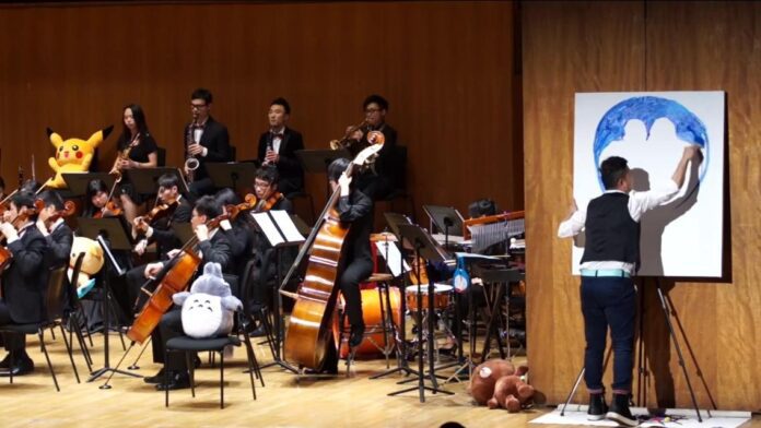 在長者中心,他帶著顏料與畫布,陪著長者一筆一筆描繪出記憶與情感。他也曾受邀與管弦樂團合作,透過沙畫於現場演出,以畫筆與樂音交織出動人的故事。這些場景沒有鎂光燈,沒有掌聲,卻是他最常提起、最令他感動的時刻。他說:「真正的藝術,是進入人的生命,而不是掛在牆上讓人評價。」