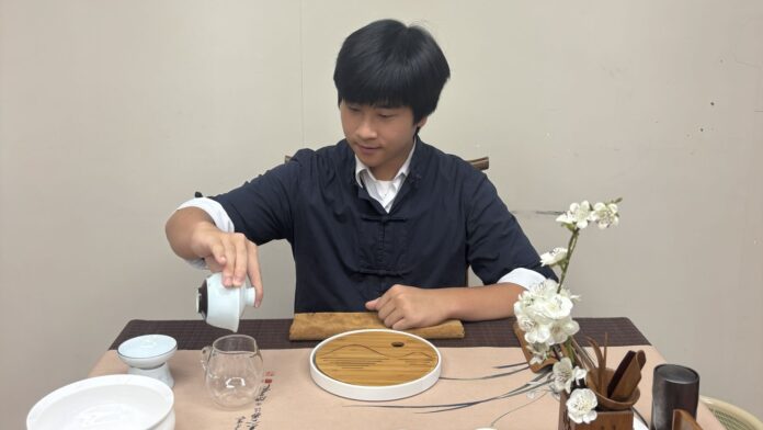 今年暑假,他報讀了由莊太(Katherine)教授的課程,正式走進了香港大益茶道教室。他選擇繼續進修,是因為發現茶藝對自己有正面的影響——尤其在提升專注力方面。